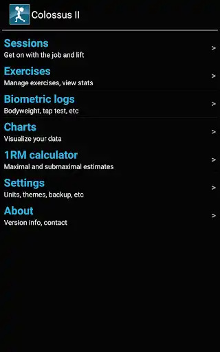 Colossus comes with a few exercises and two workout templates, an upper body and a lower body generic routine. You can create your own.