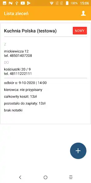 Aplikacja pozwala na podgld zlece dostawy oraz na ich realizacj.
