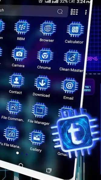 This theme is our latest free theme with Technology wallpaper and chips icons pack, designed for mobile theme fanatics. Come and play online the Digital Hi-Tech theme now & more surprises are waiting for you to discover. It will make your Android mobile stay ahead of the trend.