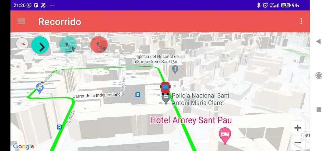La posicin del mapa se va actualizando con el GPS y podrs ver donde est y el recorrido del autobs en el que vas lo tendrs pintado en el mapa con las paradas