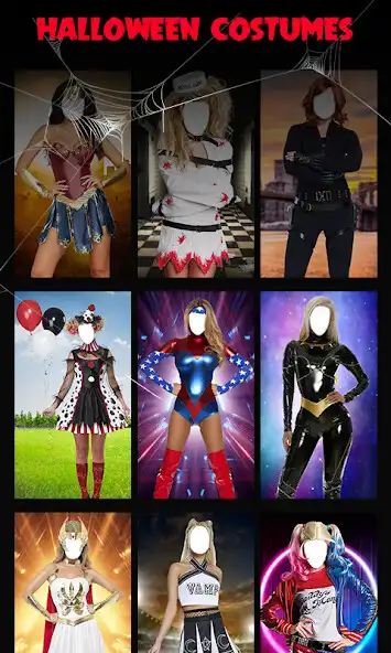 Halloween Costume Photo Editor lets you dress up in scary costumes. Many dressup Halloween characters as a spooky witch, super hero girl,devil, evil queen, cat suit, vampire, creepy doll, skeleton, scarecrow, zombie, mermaid, joker, bride corpse, princess and many more using Halloween photo montage. Instantly transform yourself dress up in best Halloween costumes and hairstyles.
