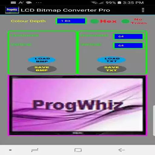LCD Bitmap Converter tool allows developers to customise firmware display graphics. This is achieved by loading a 24bit image in BMP format and selecting the colour (1bit, 2bit or 4bit) and image dimensions (for eg: 96 x 96). The result is a text file representing the image bytes in textual hexidecimal format, this code is then included in a firmware source code or library for compilation. The resultant binary when uploaded will display the graphic at the desired time.Feature Summary