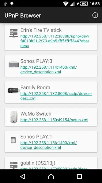 A simple and Open Source UPnP Browser. View local UPnP devices, and click to view their device description xml in your browser. Simple and Materialistic UI. No ads, no nags.