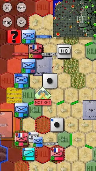 + Settings: Various options are available to alter the look of the gaming experience: Change difficulty level, hexagon size, Animation speed, choose icon set for units (NATO or REAL) and cities (Round, Shield, Square, block of houses), decide what is drawn on the map, and much more.